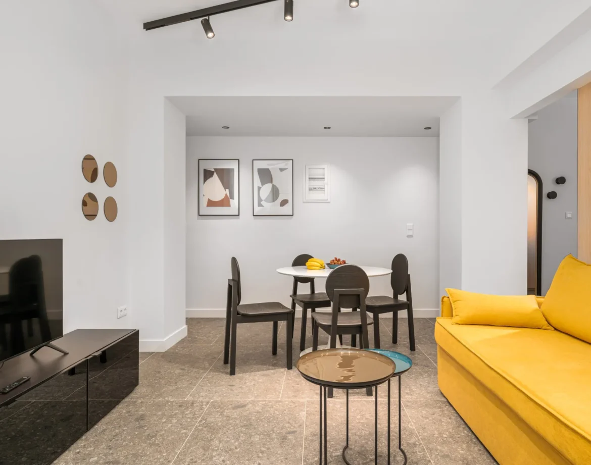 The apartment features a modern yet warm interior, complete with a fully equipped kitchen, a chic living space, and a peaceful bedroom for ultimate relaxation. With amenities like high-speed Wi-Fi, air conditioning, and a smart TV, it caters to both leisure and business travelers alike.