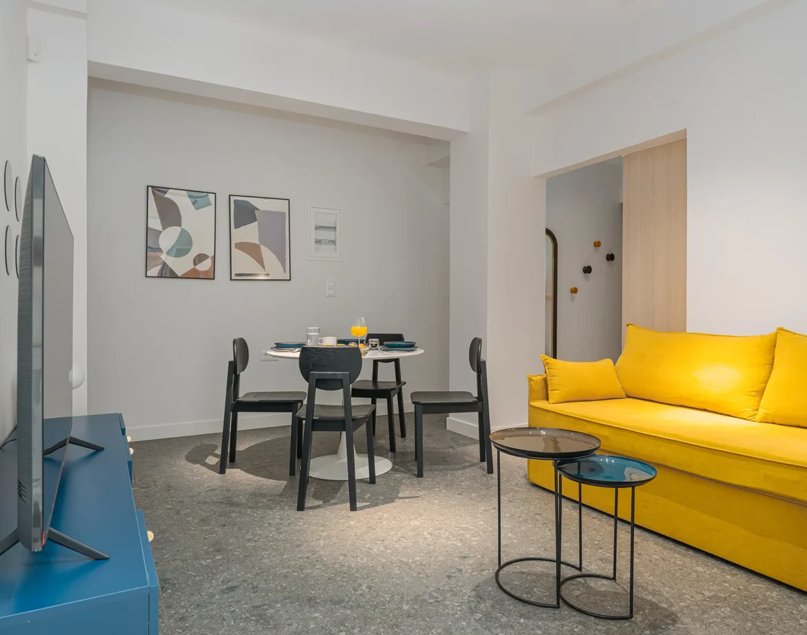 The apartment boasts a modern yet cozy interior, featuring a fully equipped kitchen, a stylish living area, and a comfortable bedroom designed for relaxation. Amenities such as high-speed Wi-Fi, air conditioning, and a smart TV ensure a seamless stay for both leisure and business travelers.